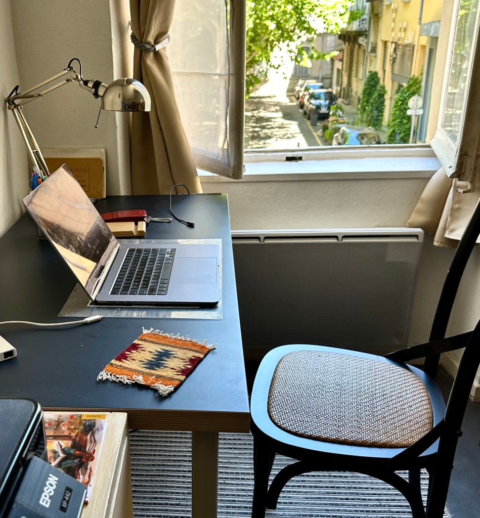 But once you get inside you appreciate just how bright and luminous the living space is, with its tall windows and light colours. Having all the windows facing onto the square means that we are not shaded by buildings on the other side of the narrow street, as is so often the case in old towns like this. So the morning sun provides a bright start to the day, while at the same time we avoid the heat of the afternoon sun.